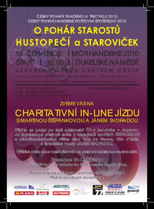 Dne 10.7.2010, pořádá město Hustopeče a obec Starovičky závody handikepovaných sportovců.